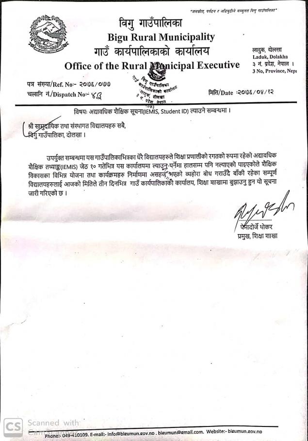 अद्यावधिक शैक्षिक सूचना (IEMIS, student ID) ल्याउने सम्बन्धमा ।
