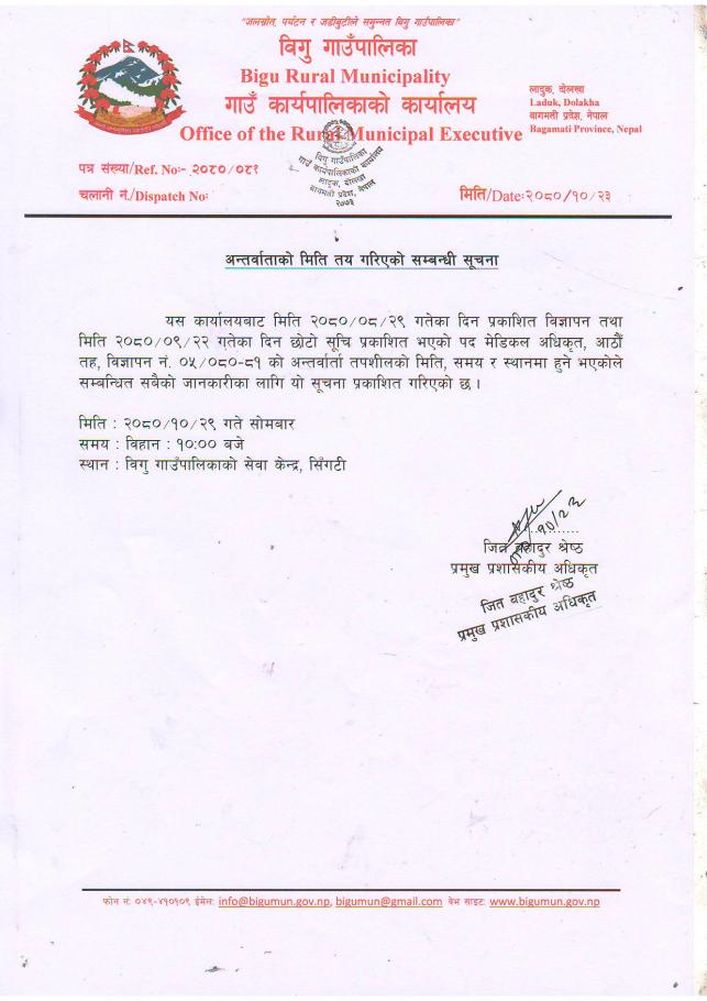 अन्तरवार्ताको मिति तय गरिएको सम्बन्धमा । विज्ञापन नं. (०५/२०८०/८१)