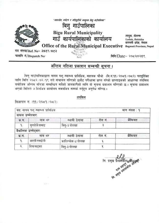 » अन्तिम नतिजा प्रकाशन सम्बन्धमा
