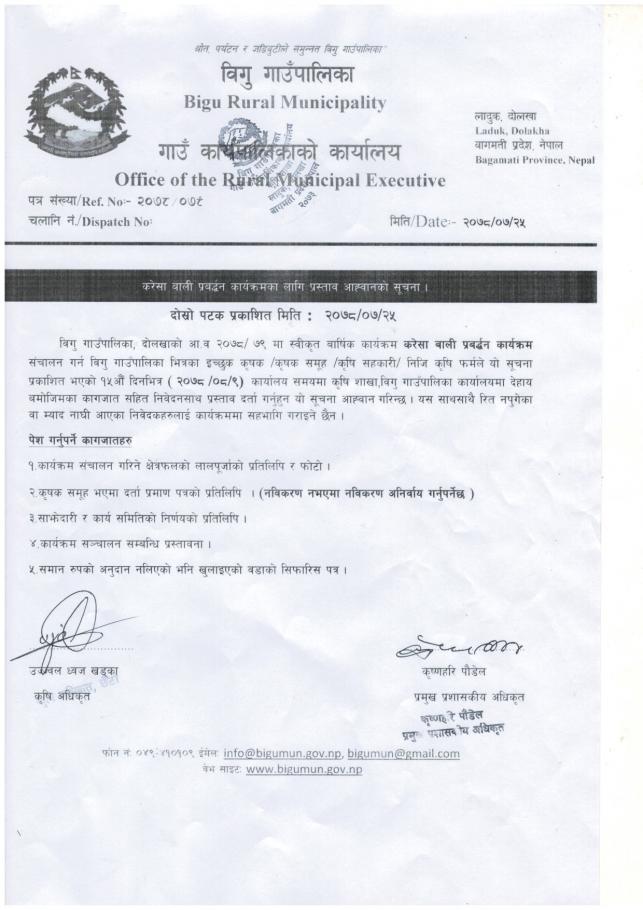 करेसा बाली प्रवर्द्वन कार्यक्रमका लागि प्रस्ताव आह्वानकाे सूचना । (दाेस्राे पटक प्रकाशित)