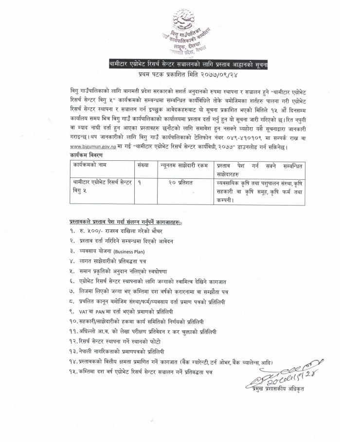 » थामीटार एग्राेभेट रिसर्च सेन्टर संचालनकाे लागि प्रस्ताव आव्हानकाे सूचना।