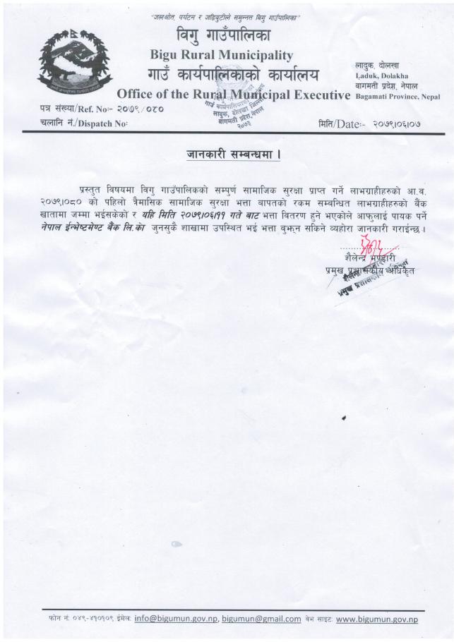 प्रथम त्रैमासिक सामाजिक सुरक्षा भत्ता वितरणको जानकारी सम्बन्धी सूचना .