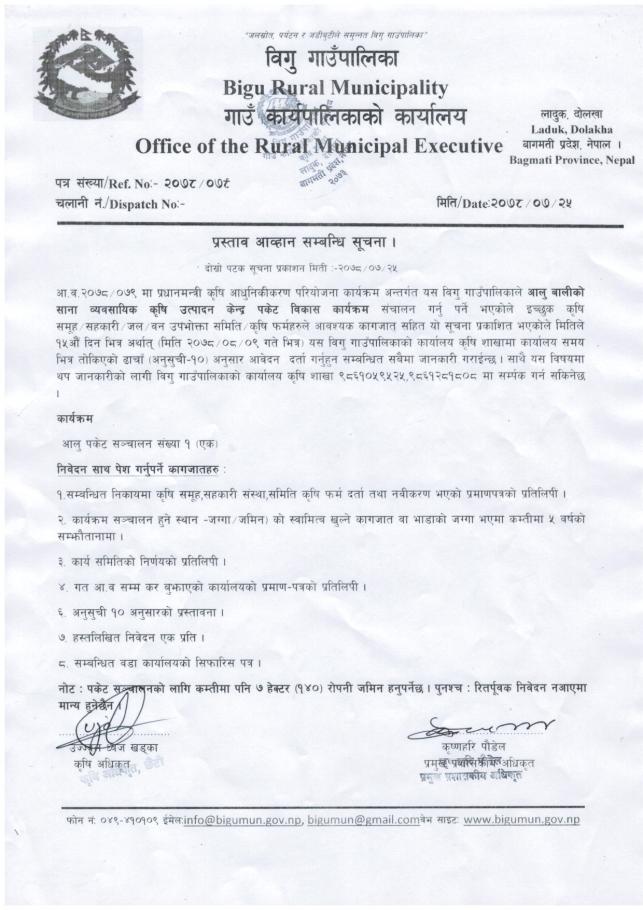 प्रस्ताव आह्वान सम्बन्धी सूचना । (दाेस्राे पटक प्रकाशित) ।