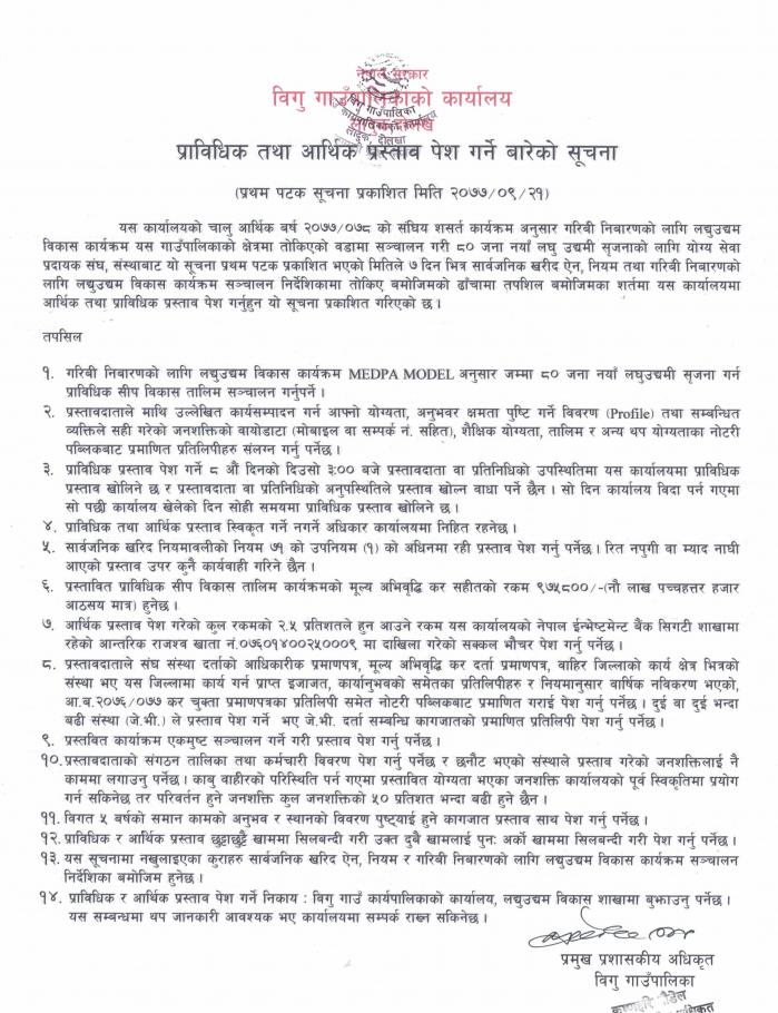 प्राविधिक तथा आर्थिक प्रस्ताव पेश गर्ने सम्बन्धी सूचना।