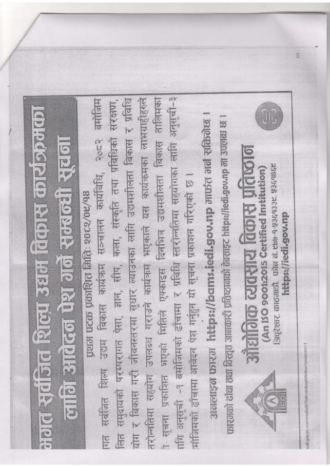 भगत सर्वजित शिल्प उद्यम विकास कार्यक्रमको लागि आवेदन पेश गर्ने सम्बन्धी सूचना।