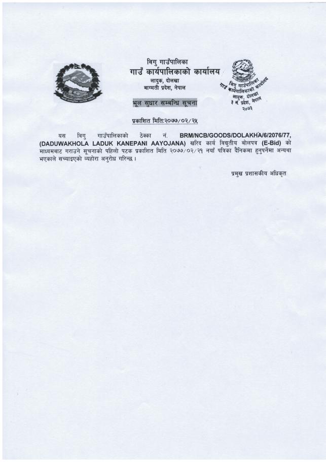 सार्वजनिक खरिद तथा बोलपत्र सूचना