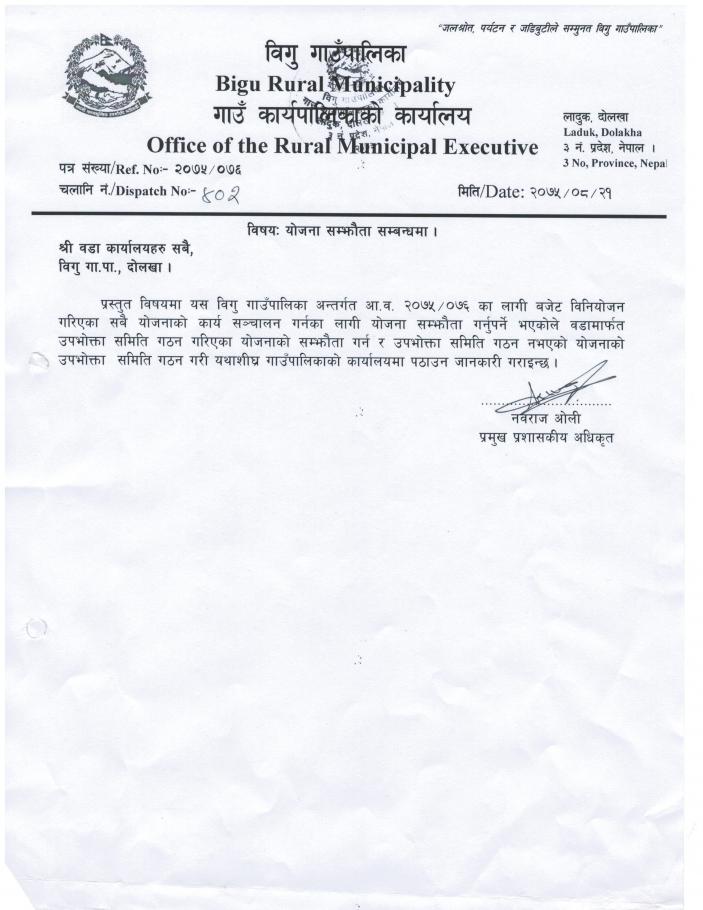 याेजना सम्झाैता सम्बन्धमा । (वडा कार्यालय सबै)