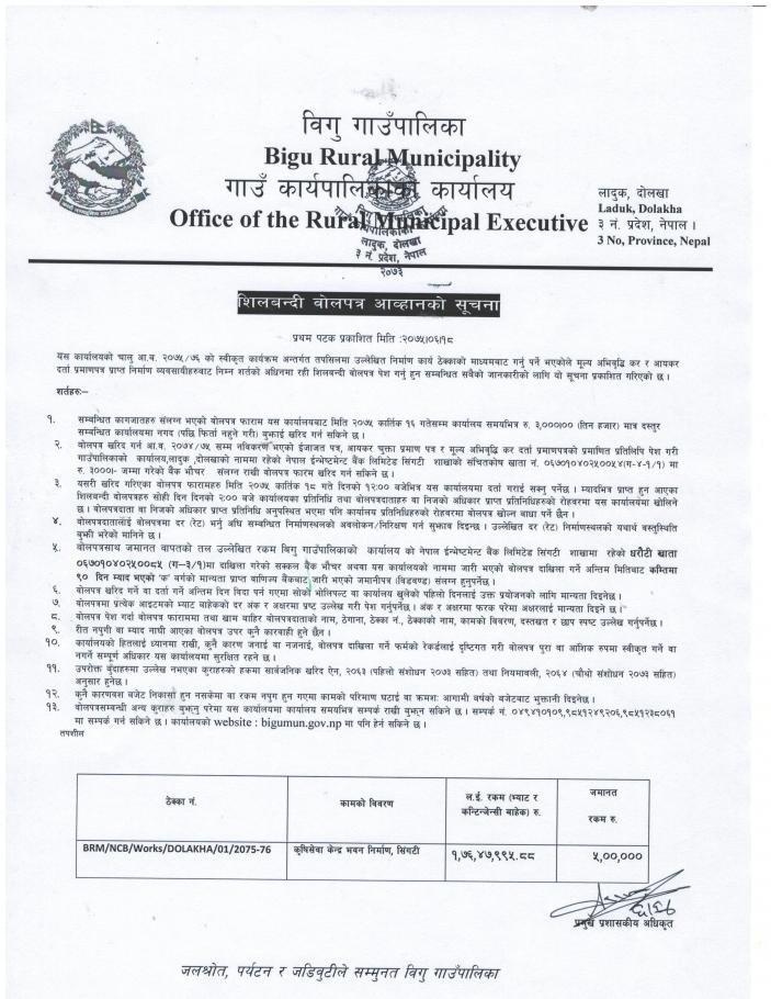 शिलवन्दी बाेलपत्र अवहानकाे सूचना !!!