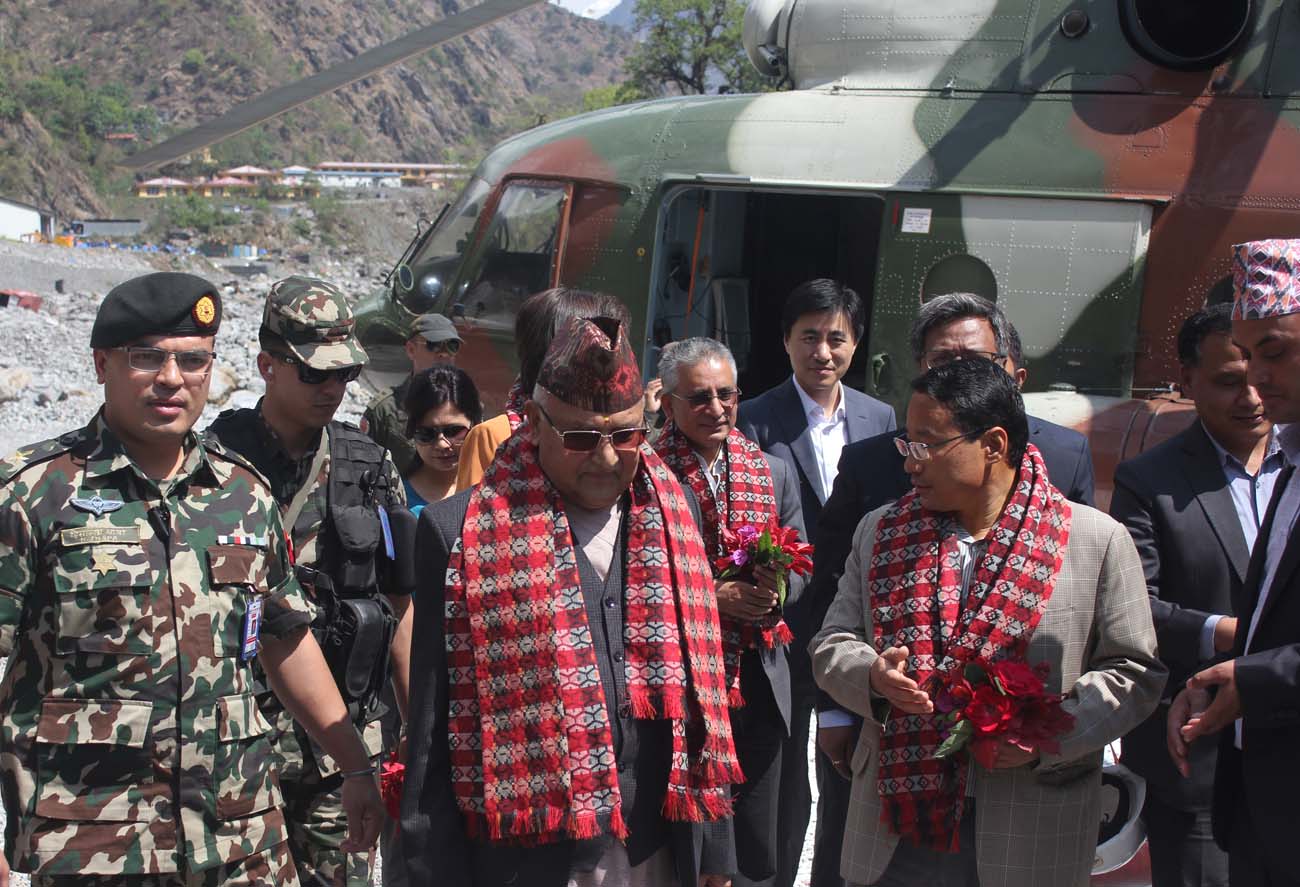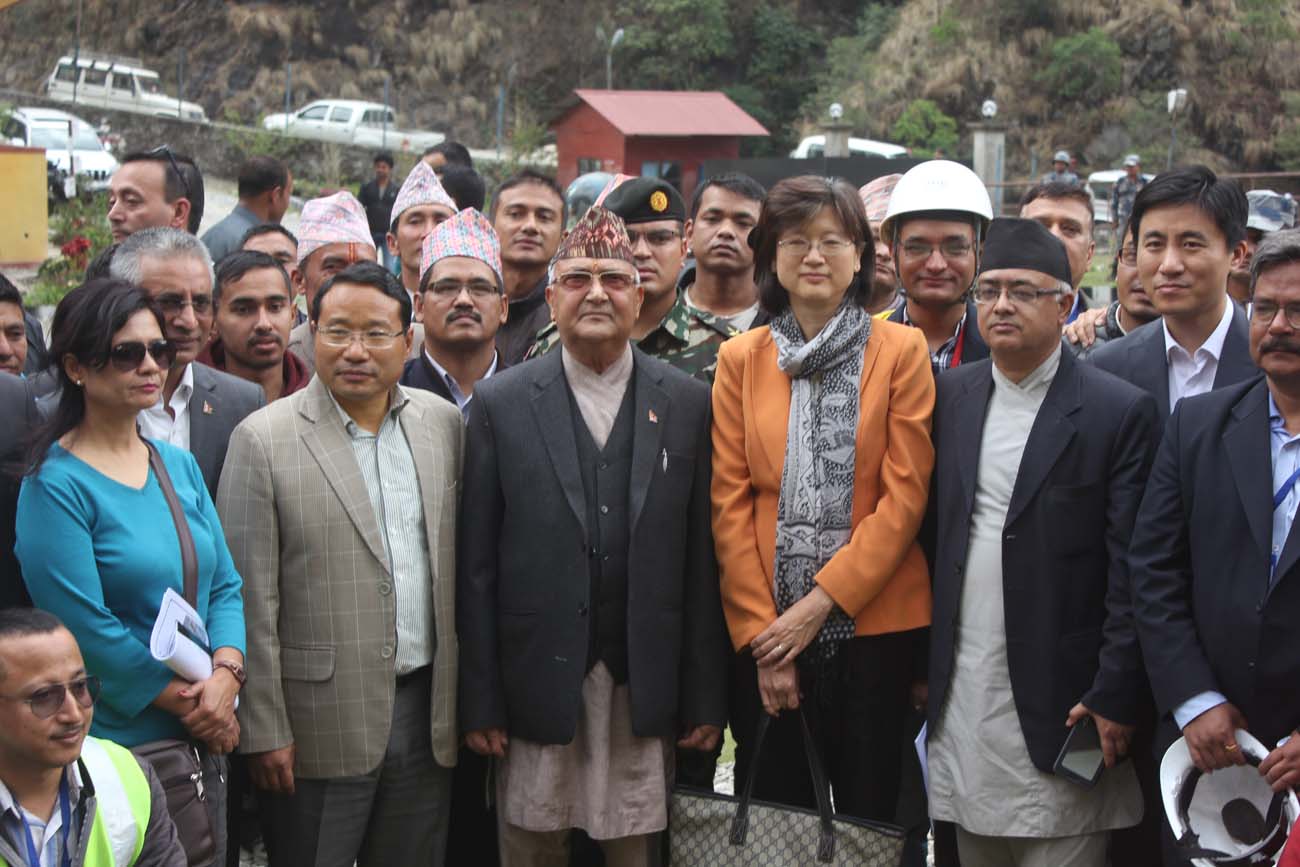» सम्माननिय प्रधानमन्त्री के पि ओली ज्यूबाट निर्माणाधिन माथिल्लो तामाकोशी जलविद्युत आयोजना अवलोकन गर्नु हुँदै ।