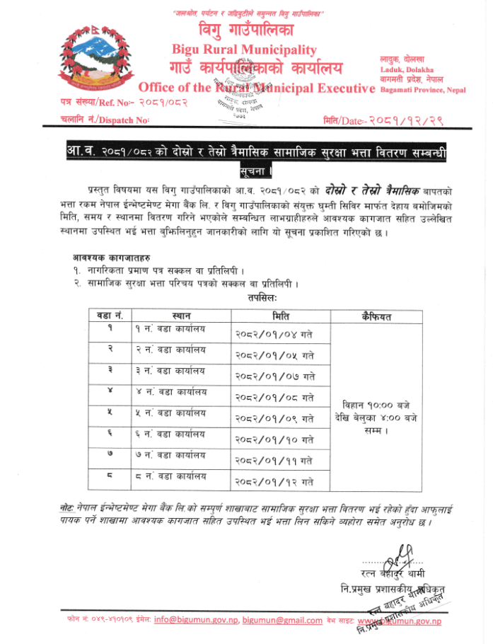 आ.व. २०८२-८३ को दोस्रो त्रैमासिक सामाजिक सुरक्षा भत्ता वितरण सम्बन्धी सूचना