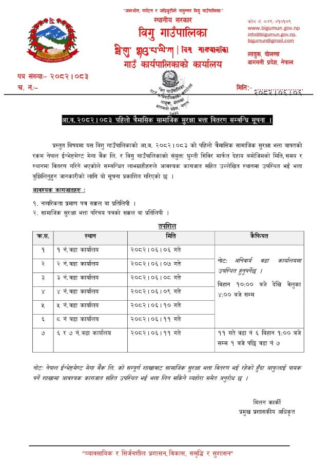 विगु गाउँ कार्यपालिकाको मिति २०८२ बैशाख १८ गतेको प्रस्ताव तथा निर्णयहरु