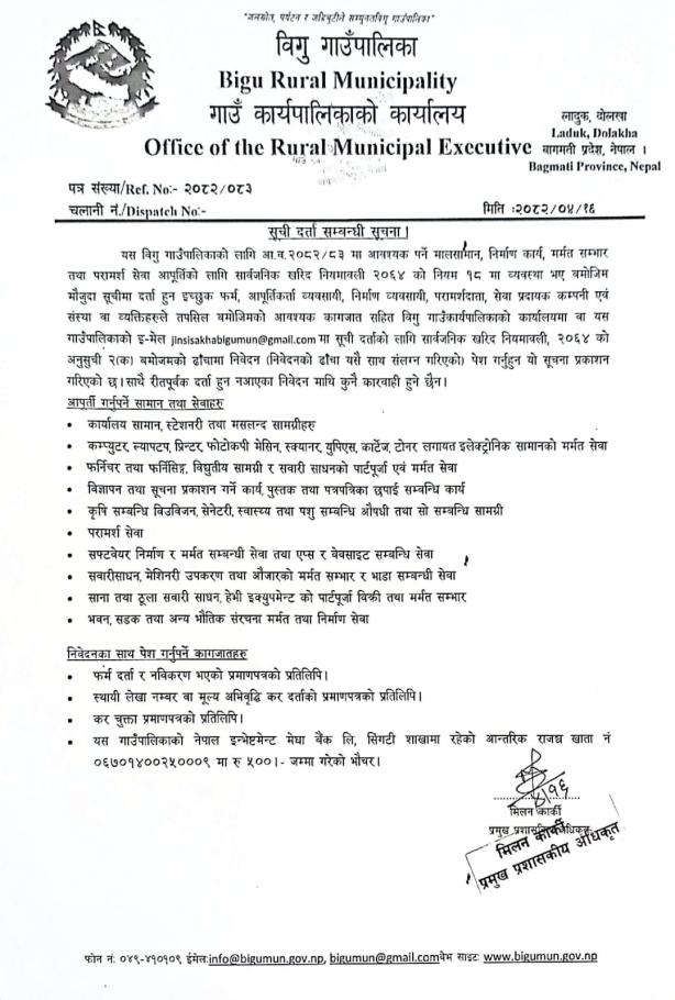 सार्वजनिक खरिद तथा बोलपत्र सूचना