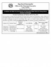 Invitation for Bids for procurement of fabricated Steel Parts for Orang Khola (Paheli ) Trail Bridge