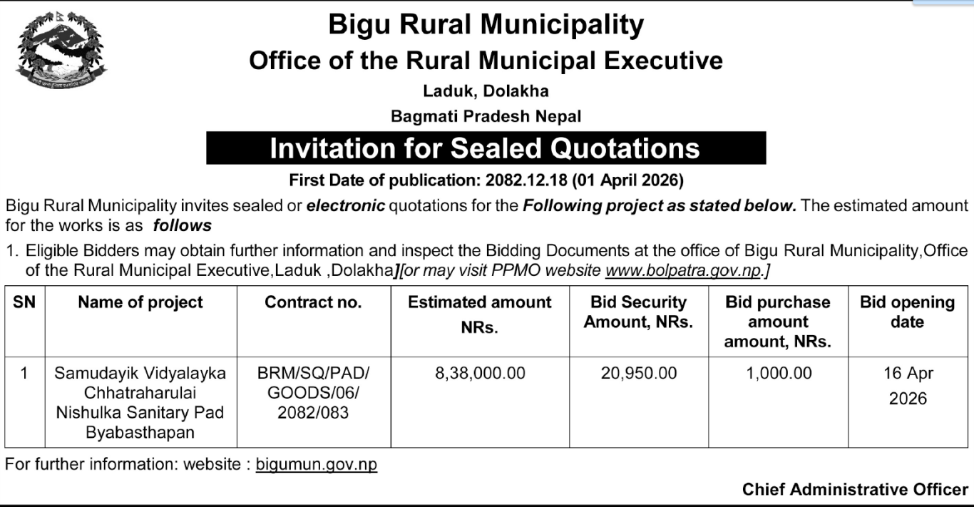 सार्वजनिक खरिद तथा बोलपत्र सूचना