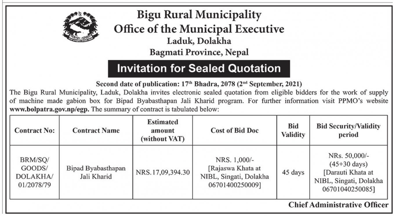 सूचना प्रकाशनको लागी प्रस्ताव आह्वान गरिएको सूचना ।